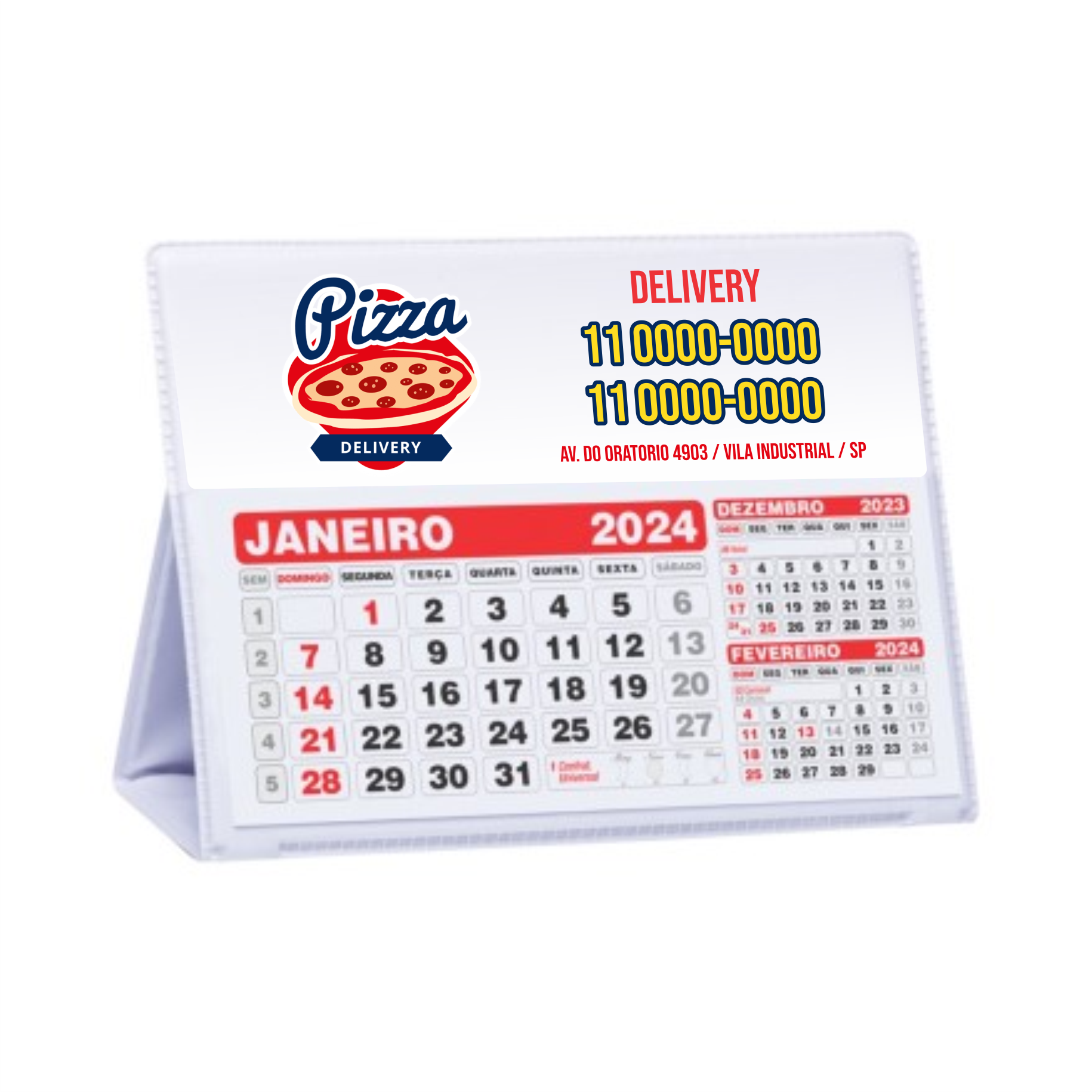 Calendário de Mesa Pequeno em PVC Branco - Acompanha PVC + REFIL 2024