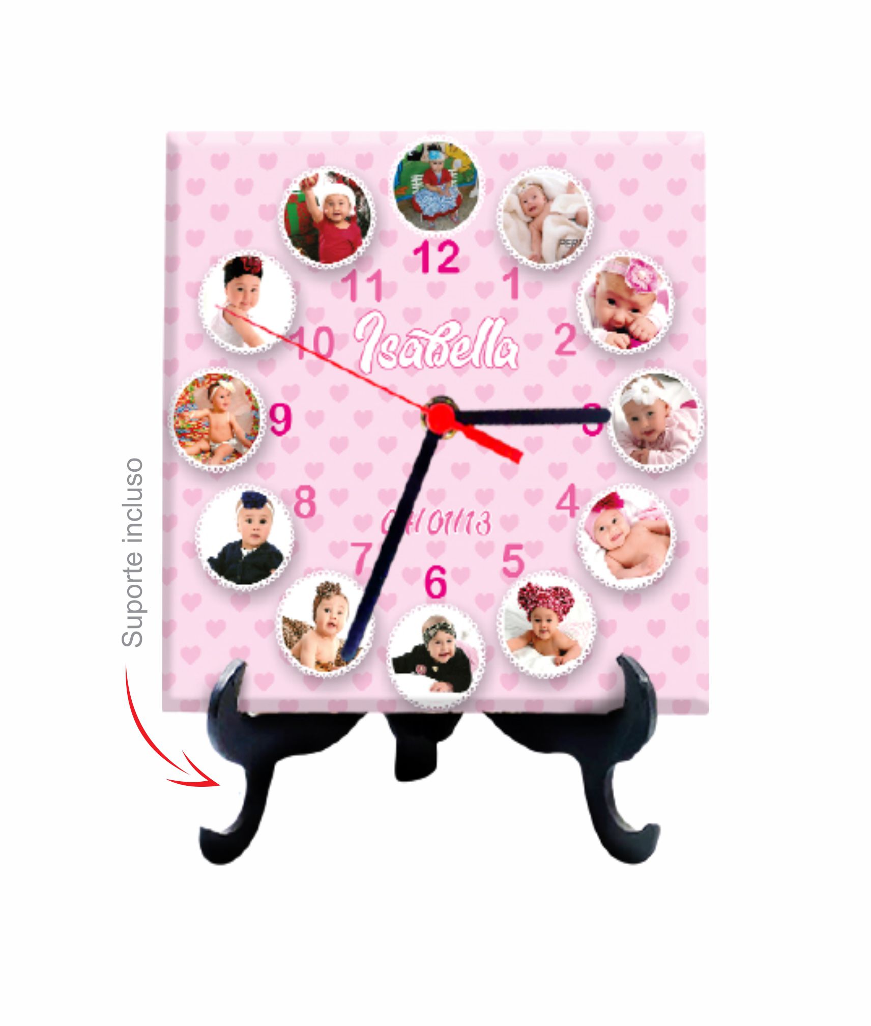 Relógio Porta retrato em AZULEJO tamanho 20x20 com suporte para FICAR EM PÉ.